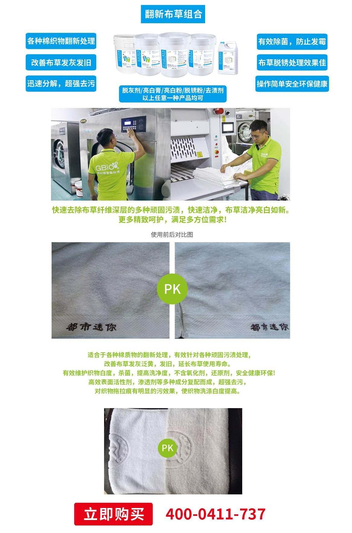 有效針對(duì)各種頑固污漬處理,改善布草發(fā)灰泛黃,發(fā)舊,延長(zhǎng)布草使用壽命。有效維護(hù)織物白度,******,提高洗凈度,不含氧化劑,還原劑,安全健康環(huán)保!******表面活性劑,滲透劑等多種組分復(fù)配而成,******去污,對(duì)織物拖拉