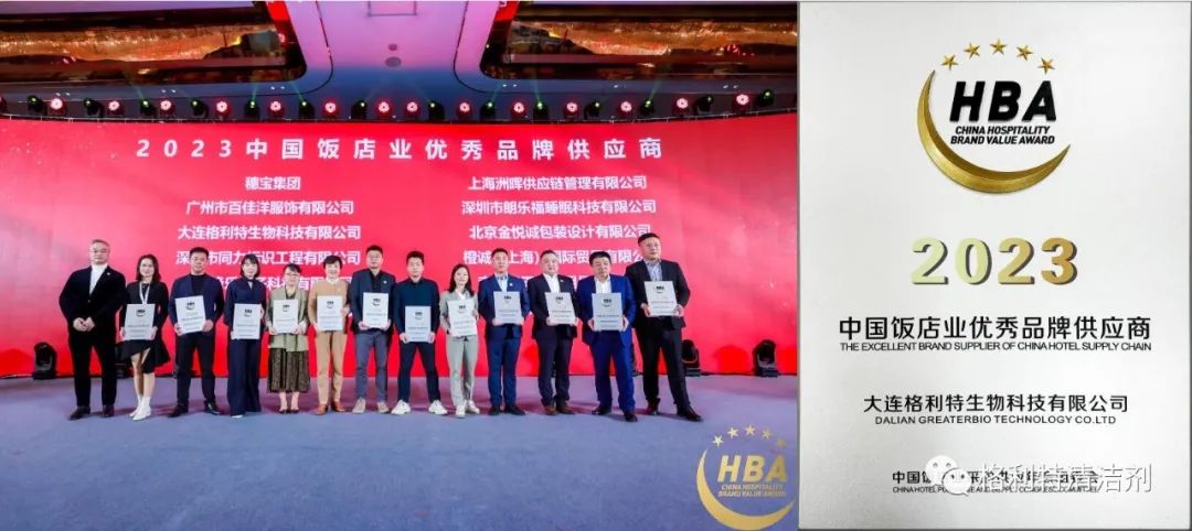 榮耀巔峰時刻,格利特載譽而歸。格利特不負(fù)眾望,憑借高品質(zhì)的酒店清潔劑和服務(wù),榮獲“2023年中國飯店業(yè)優(yōu) 秀品牌供應(yīng)商”。